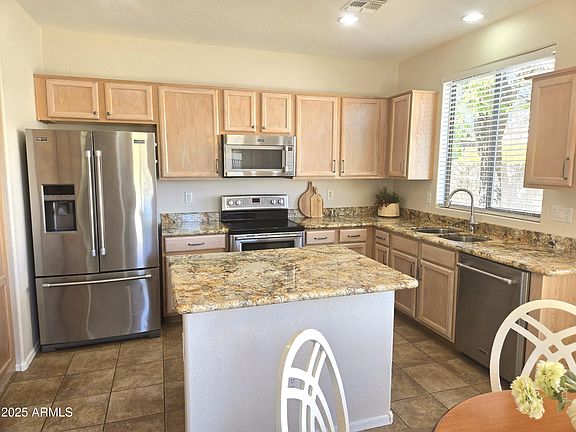 Move in ready 4 bedroom+ Den, 3 FULL BATH home with sparkling fenced play pool in Gilbert. Home set up for multi-generational family, mother's suite or more. 2025 painted & New neutral carpeting in bedrooms & huge living room, new insulated garage door & opener in spacious 2 car garage. N/S orientation. Fenced pool for relaxation and entertaining. Large yard & planter boxes for your own garden! Yes! 3 bath home & 4 plus Den !! Tile in spacious kitchen & baths, granite kitchen island, & everything needed for a light snack to gourmet meal. SS appliances & SS Refrig INCLUDED!! Tile roof. Lush grass landscaping. Refreshing Oversized Yard with wrought iron fenced play poof for relaxation. This home is a must see and offers so much in Neely Commons!