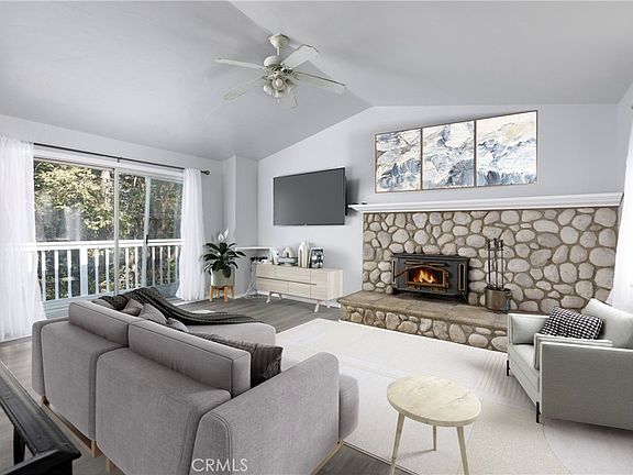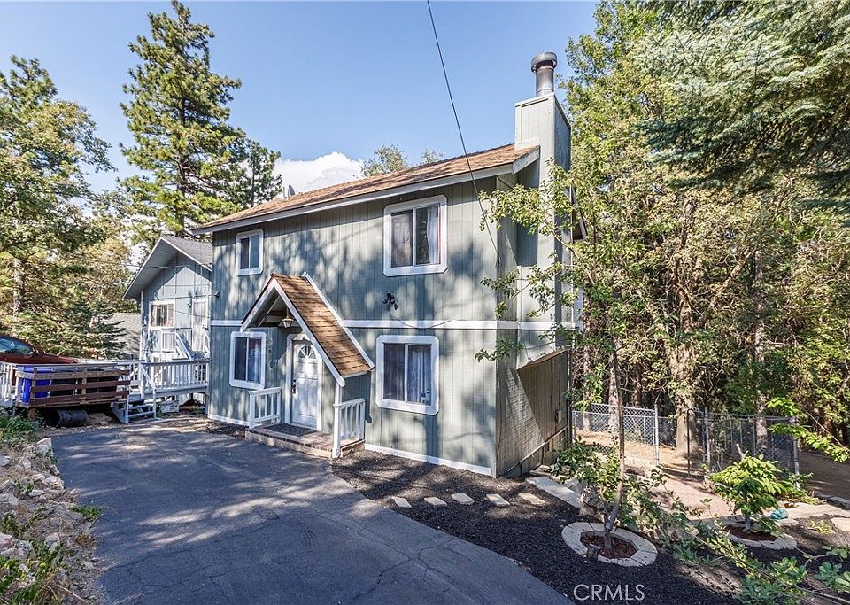 PRICE DROP TODAY!!! Welcome to Mountain living with DOUBLE LOT for lots of extra parking! Enjoy your fireplace in your living room while you cook in your remodeled kitchen. The home has 2 bedrooms at street level with a full bath downstairs and a 1/2 bath upstairs. Off the living room is indoor laundry & 1/2 bath and plenty of open space, just waiting for the perfect buyers! The home is close to Crestline in Rim Forest with plenty of room for large family gatherings with extra parking. The oversized deck leads to a fully fenced backyard with a large storage shed. Surrounded by trees, on city sewer and beautiful curb appeal! Seller just out new carpet in both bedrooms this week, ready for the new buyers to enjoy their mountain home. This home also qualifies for USDA 100% financing!