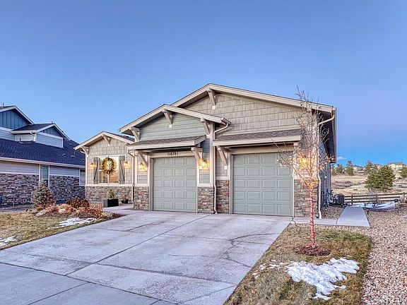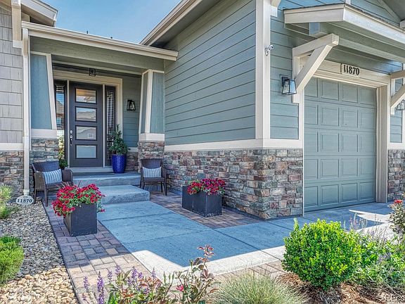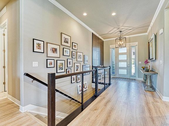 Don't wait to build,this home is like new,2 years old with a PREMIUM LOT and UPGRADES!Enjoy the privacy of the open space while sitting on the covered deck with built in heaters and lighting.This ranch style home with a walkout basement begins with a modern front door,custom wall tile and engineered wide plank floors throughout the entire home.The modern stairs with cable wire sets the mood for a contemporary feel. The office/flex space is a must see with real, brick accent wall and custom glass barn doors. As you enter the open floor plan, the kitchen is upgraded with white quartz countertops, floor to ceiling white cabinets,built in Jenn Air 42"" refrigerator and stainless steel appliances.The kitchen island has plenty of seating, an oversized stainless sink and a subway tile backsplash make it an inviting space. All the lighting has been upgraded and makes this home one of a kind. Seller expanded the family room and kitchen by adding 4 ft of living space. Plenty of room for gatherings around the TV with sliding glass doors to bring the outside in! The custom wood shelves and tile work make the family room an inviting space. The owner's suite is bright with large windows and en suite bath.The stand alone soaking tub, seamless glass shower and tile floors complete a spa feel along with a walk in closest. All mirrors and lighting in the home have been replaced to make it a truly unique home. Two bedrooms and baths complete the home with a mudroom with built in shelves. The extended length garage is perfect for trucks or all your toys. The walkout basement is ready for your personal touch.The custom backyard is an entertainer's delight with a fireplace and several places for gathering The views of the open space,mountains, and the Denver lights make it a premium location.The Idywilde community is highly sought after location with a community pool, clubhouse, fitness and the FIKA Coffee house. All are in walking distance along with Cimarron and Legend High School.