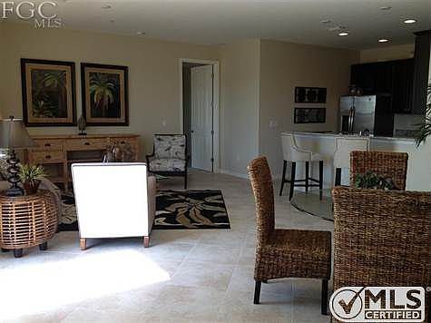 LAKE & LIT FOUNTAIN VIEWS FROM EVERY ROOM! Gorgeous 2 bedroom, 2 bath San Clemente model condo in Paseo! Tastefully furnished & decorated & includes 2 car garage & TWO screened lanais facing the lake (one off of each bedroom)! Perfect set up for two couples! Well equipped kitchen with granite countertops, stainless steel appliances & gorgeous espresso colored cabinets. Great room features comfortable furnishings, big screen TV viewing & dining table that seats 6. Master bedroom has queen size bed, private bath & walk in closet. Second bedroom has double bed & twin bed, it's own bath & walk in closet. Inside laundry room and all linens provided. All tile flooring & soft decorator paint throughout. Amenities include resort style pool, spa, tiki bar, pub for a drink, bistro to grab a sandwich, private movie theater & fishing pier. Fully equipped gym & tennis courts & too much more to list! Come stay a month, or all winter! You may have trouble leaving this beautiful tropical paradise!