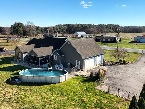 Beautiful ranch on country lot outside of Greenwood. Walk in the front door to this well maintained ranch to an open floor plan with kitchen, living room,dining room combo. Kitchen features beautiful cherry 42" cabinets, island bar with room for dining table. recess lighting, sliding glass door that opens up to sun porch. Laundry room off the oversized garage with attic storage over head. Three nice size bedrooms, two full baths with sunroom sitting room off the master bedroom. Lots of closet space and stand up attic for more storage. Concrete patio around the above ground fenced in pool. Encapsulated crawl space, blacktop drive way with lots of room to park your toys. This home has lots to offer and no HOA !! Sit back and watch the deer cross the field on any night of the week. Located minutes from anywhere in Sussex county. Come check it out!