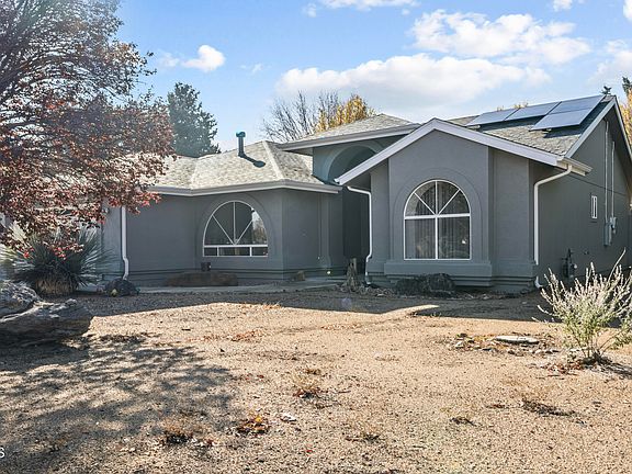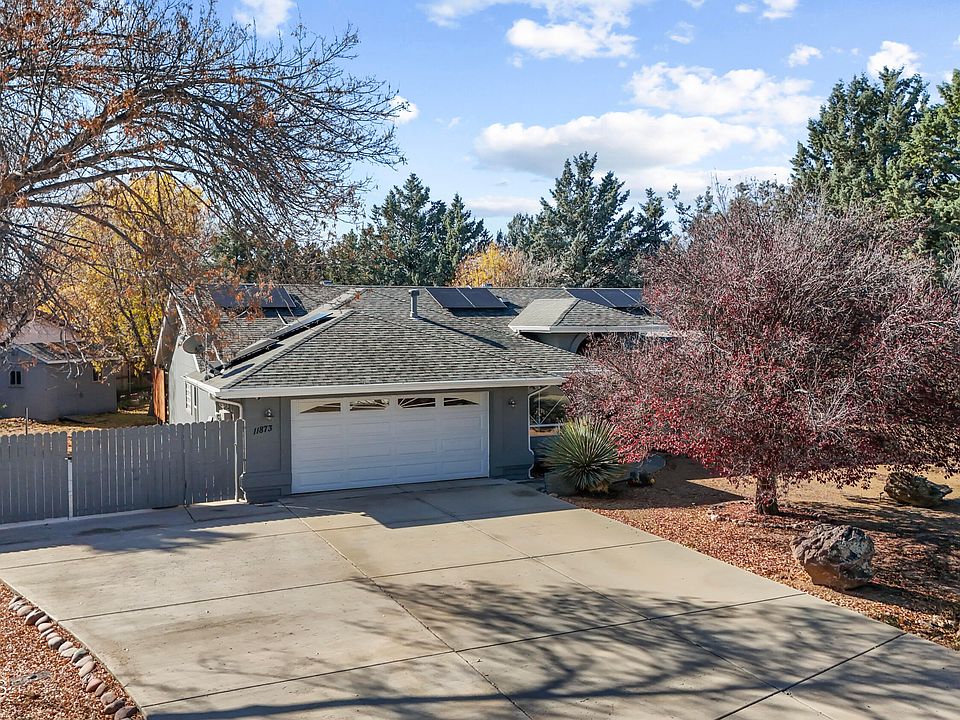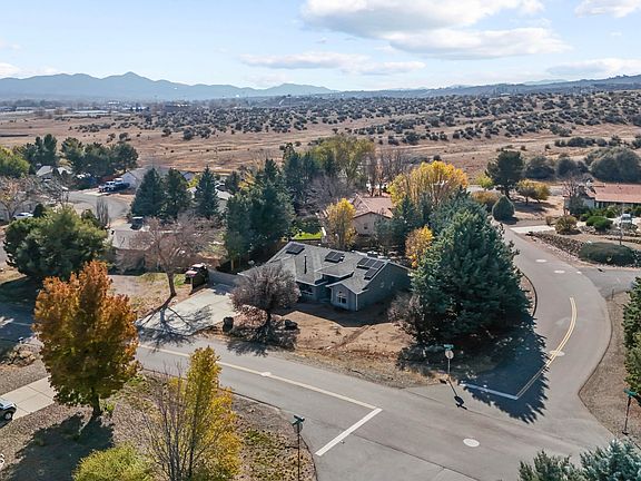 Welcome to this lovely 3 bedroom, 2 bathroom, 1,665 square foot home in the desirable Prescott Country Club. Set on a corner lot in a peaceful golf community, this property features a fully fenced backyard lined with mature trees, an RV pad with 50-amp hookups, and an oversized 2-car garage with extended driveway. Upgrades in recent years include a new roof, HVAC, windows, sliding glass door, water heater, interior/exterior paint, garage door with wall-mounted opener, and solar installed in early 2025. Inside, the bright great room showcases vaulted ceilings and a modern gas log fireplace, with large windows overlooking the backyard. The kitchen offers ample cabinetry, stainless steel appliances, and a breakfast nook, plus a formal dining area nearby. The split floor plan includes a spacious primary suite with walk-in closet, dual sinks, and dressing table. Luxury vinyl plank flooring in guest rooms and a central laundry room with built-in cabinets add comfort and convenience. Move-in ready, energy-efficient, and ideally located--this home blends modern updates with relaxed community living.