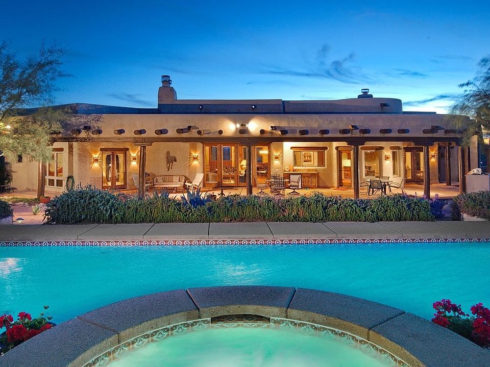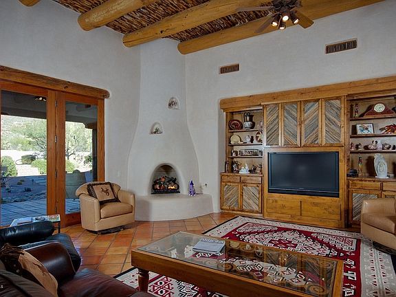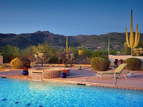 For more information on this property, contact the Listing Agent, Lori Mares at (520) 918-5808 or LMares@LongRealty.com. Amazing single level Ray Birch built custom Santa Fe home. Your new home is on an elevated corner lot allowing for breathtaking mountain views from the north facing backyard & dazzling city views from the cozy front courtyard. Backyard has a 40'x20' heated lap pool w/ spa, endless covered patios, an outdoor kitchen & mature saguaros w/i well manicured landscape. Inside, treat yourself to unique custom features - coved & ribbed ceilings, lifetime warranted windows w/ wood headers, hand skipped vigas, hand coated stucco, 3 fireplaces, custom cabinetry & vanities, jetted tub & more! 2 bedrooms have private baths! Central sound system w/room by room control. Extra rooms include a large rec room/office w/ private 1/2 bath, exercise room & walk in laundry. All on 3.34 acre horse property.