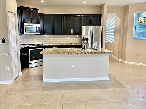ONLY TWO MONTHS to move-in (1st + security). Beautiful two-story single family home for RENT in Hemingway Point offering 4 bedrooms and 3.5 bathrooms. The spacious kitchen features stainless steel appliances, dark wood cabinets, and granite countertops. The first floor is fully tiled. Enjoy a large backyard with a covered terrace, perfect for outdoor entertaining. This home also includes a laundry room and a 2-car garage. The double-door entry master suite boasts two walk-in closets, a double-sink vanity, separate shower, and soaking tub. No front neighbors the community offers a pool and ample guest parking. Conveniently close to the Turnpike, Black Point Park, Publix, CVS, Wawa's, Chick-fil-A and so much more! Call today for a private showing!