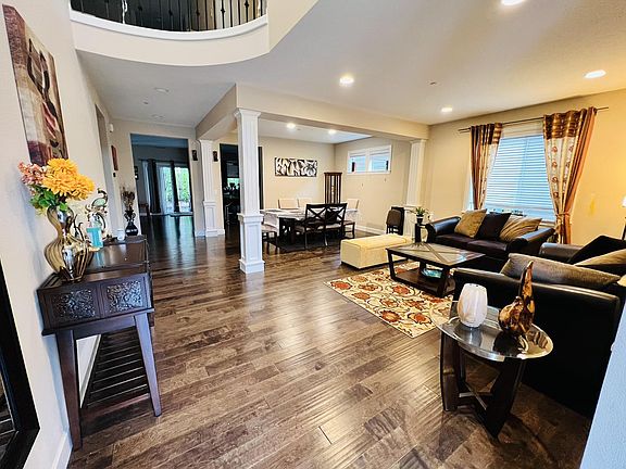 Separate formal livingWalk in closetLarge media roomAdditional storage areaWooden flooringOpen floor planHuge master bath