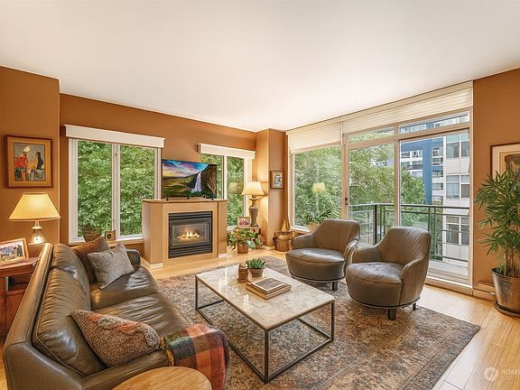 Gas fireplaceSoutheast corner residenceLush downtown parksSpa-inspired bathBuilt-in sound systemExpansive windows