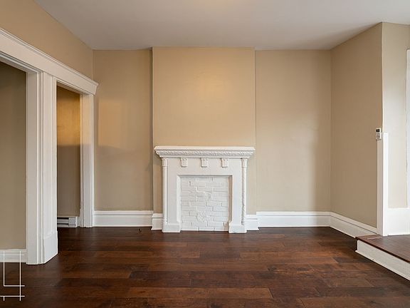 Rich mahogany-toned flooringIconic short north archesHigh ceilingsDecorative fireplaceBay windowGranite kitchen countertop