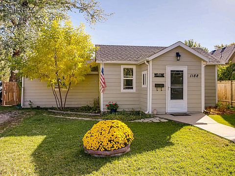 Charming very affordable bungalow in Old Town Loveland with 140 ft Deep lot with alley access. Quiet neighborhood yet close to downtown. Beautiful backyard and patio with 10x12 tool shed. Washer & Dryer included. Rear of lot fenced separately as storage area with tool shed, which could be rented out separate from house and yard with its own 8x8 shed. Zoned R3e HIGH-DENSITY RESIDENTIAL, Investors could build 4-Plex. The 2nd Bedroom missing a closet.
