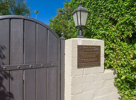 Own a piece of Palm Springs history The elegant "Home of Hope" was occupied for many years by Hollywood royalty Bob Hope and his wife Dolores. One of three properties they owned here, this estate remains largely true to its original design but has been thoughtfully updated. Sitting on over 16,000 square feet of land, the private park-like double-lot is surrounded by lush, mature hedges and citrus-bearing trees. The graceful interior boasts nearly 3,000 square feet of living space. Enter into the grounds and be immediately captivated by the oversized swimming pool and expansive deck that is designed for al-fresco entertaining. The large, retractable awning provides shade for outdoor dining or pool party entertainment. Recent remodeling includes the addition of solar panels, an upgraded kitchen, and beautiful wallpaper from Schumacher and Cole & Sons. The casita is accessible via private entrance and can be used as a vacation rental. It's a spectacular property.