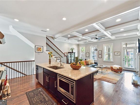 Beautifully appointed and exceptionally spacious, this south-facing townhome offers prime Westside living with unbeatable convenience. Just minutes from Downtown, Buckhead, Piedmont Hospital, major highways, and the airport, the location is ideal for both work and play. Designed for the culinary enthusiast, the chef-inspired kitchen features premium upgrades, including a Wolf 6-burner range, SubZero refrigerator, marble countertops, and custom ceiling-height cabinetry. Seamlessly connected to the large living room, you'll enjoy a cozy gas fireplace, elegant coffered ceilings, and effortless flow for entertaining. The oversized primary bedroom is a true retreat, complete with a sitting area, private deck, and generous walk-in closet. The spa-like primary bath includes a soaking tub and separate glass shower. Additional highlights include three spacious outdoor living areas, a two-car garage, abundant storage, and a central vacuum system-offering both comfort and convenience throughout.