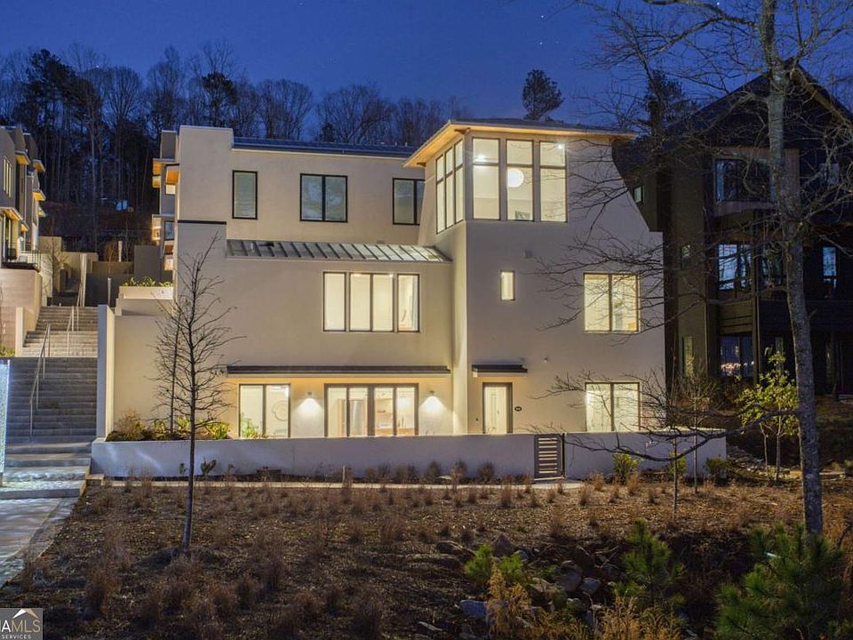 This modern hillside cottage in Serenbe's Mado Hamlet offers stunning views of Mado Pond and is ready to welcome you home. Enter through the front courtyard into a welcoming foyer, then step into the terrace level with its open living and dining area, plus a bedroom and full bath. Upstairs you'll find the laundry area, the owner's suite, and a third bedroom with bath. The top level, with vaulted ceilings and sweeping views of the treetops and pond, can serve as a fourth bedroom, office, or additional living space. Outside, the private courtyard is ideal for alfresco dining or simply enjoying the peaceful sounds of nature. All of Mado's amenities-including Halsa Restaurant, the Spa at Serenbe, Bamboo Juices, and 20+ miles of nature trails, are just a short distance away.