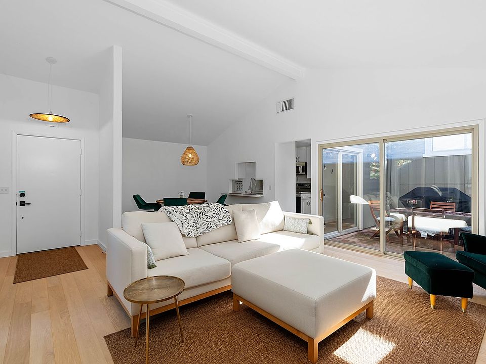 Gas fireplaceTwo enclosed patiosTwo bedroomsWasher and dryerCentral air conditioningVaulted ceilings