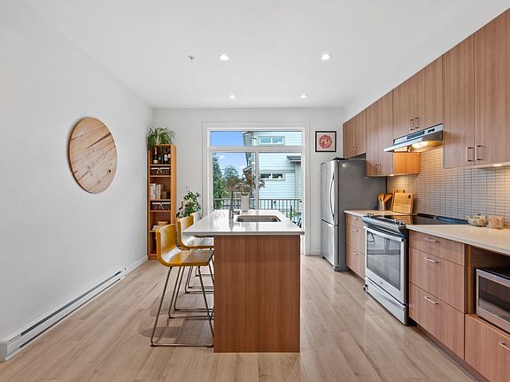 This beautiful two bedroom, two bathroom townhouse with tandem garage + covered carport has everything you need for enjoying Squamish life. Functional and stylish, this home has all the features you're hoping to find, including: bright & open design with views out every window, 9' ceilings on main floor, functional entry with easy garage access, quartz countertops in the bathrooms and kitchen, large walk-in shower in primary ensuite, Italian porcelain backsplash in kitchen, large island with storage and eat-up counter, large undermount sink, and modern cabinetry. Enjoy the central location close to schools, downtown amenities, & estuary trails. Located on a quiet street with no road noise, this is a special spot in this beautiful mountain town.