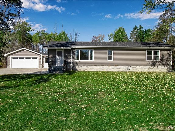 Welcome home to this picture-perfect 3-bedroom, 2-bath ranch nestled on 1.3 acres in the Town of Newstead, within the Alden School District! Every inch of this home has been tastefully updated and lovingly maintained—truly move-in ready from top to bottom. The spacious front living room welcomes you with an abundance of natural sunlight and a bright, airy feel. The completely reimagined kitchen offers new cabinets, countertops, recessed lighting, flooring, and a convenient pantry—all designed for today’s modern living. The open layout flows seamlessly into the dining area, featuring a sliding door that leads out to an amazing maintenance-free deck with built-in lighting and steps down to a stamped concrete patio and cozy fire pit area for entertaining or relaxing nights under the stars.