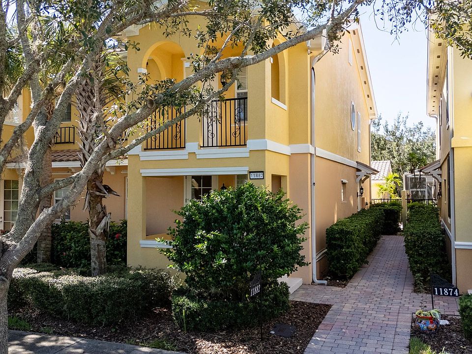 Stunning 4-bedroom, 3-full-bath townhome in the heart of Lake Nona within the gated Village Walk community. Enjoy lakefront views and the security of 24/7 gated entry. Built by Divosta Homes with concrete construction on first and second floors and garage, this home features laminate flooring throughout and custom closets by Closet by Design.