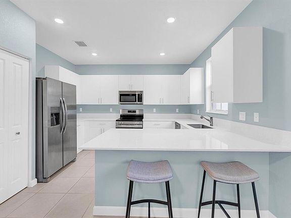 Welcome to gated newer construction Sunset Trails! Neutral tile floors on the main level. Designer powder room upgraded to accommodate your guests! Modern kitchen w white cabinetry, quartz counters, stainless steel appliances, breakfast bar & a pantry! Motivated sellers made lots of improvements from the basic builder package. Light fixtures, fans, bathroom fixtures/hardware, etc. Primary bedroom features walk in closet with custom cabinetry to allow full use of this great space! Full size washer/dryer! Private fenced in backyard upgraded w pavers! Community features pool, spa, playground, & gated entry. Enjoy peace of mind of newer construction! All impact windows/doors. Lower insurance premium! Low monthly HOA! Virtual tour link is a full video tour!