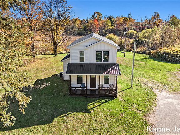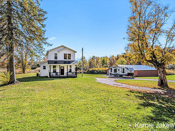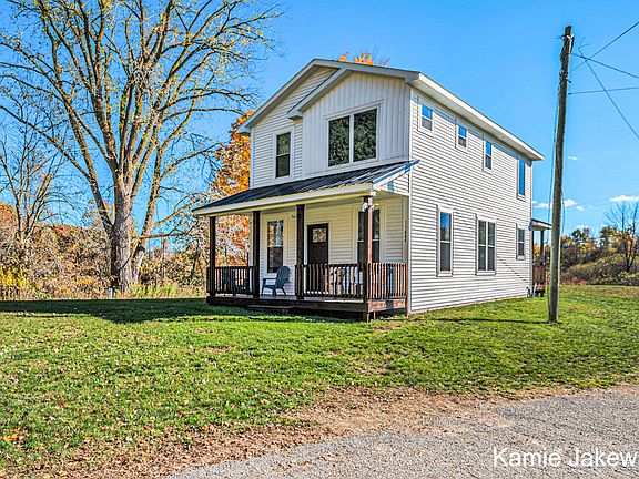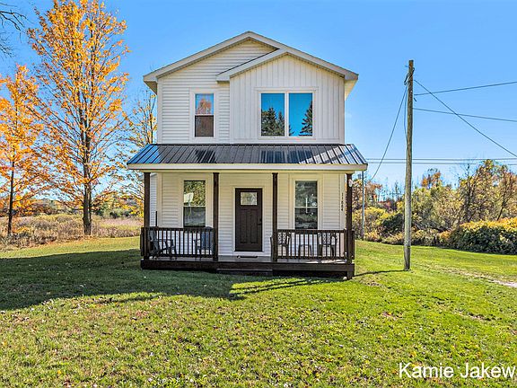 Completed in 2023, this two-story home delivers the space, efficiency, and privacy today's buyers want—all on 3.4 acres with elevated views of Seely Creek. Enjoy morning coffee on your private creekside deck and unwind on either of the covered porches overlooking the property. Inside, the open main level is designed for easy living and entertaining, featuring a flexible bonus room ideal for a home office. Upstairs, you'll find all bedrooms and the laundry room conveniently grouped together. This home has been meticulously maintained and lightly used as a short-term rental with consistent cleanings—offering a turnkey option for both homeowners and investors. The 50x51 pole barn takes the property to the next level: NEW steel roof, full electric, power overhead door, plus a dedicated hangout zone with bar and TV area—perfect for hobbies or storage.. A rare combination of modern construction, acreage, and amenities—just minutes from Grand Rapid, Lowell, Greenville, Belding, and Rockford.