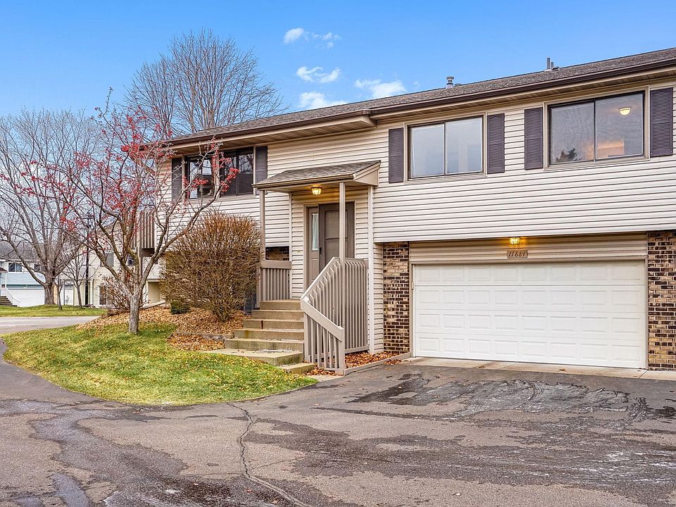 Hard to find, super clean town home in a difficult price-range! You'll appreciate the pride of ownership that shows throughout this well maintained home, and this floor plan offers some really hard to find features at this price point! Unlike most town homes, you're surrounded by your own private green space and the double garage and unfinished lower level create a ton of storage space; or a blank canvas for your future plans...additional bedrooms, bathroom, family room, etc. The upper level boasts a warm and inviting living room, well designed kitchen, separate dining area that walks out to your private deck, a wonderful walk-in pantry, and two spacious bedrooms along with the full bathroom. In the huge primary bedroom you'll find a walk-in closet and private vanity offering an additional space separate from the bathroom to prepare for the day. All of this in the perfect location with trails right from the neighborhood connecting you to beautiful Pheasant Ridge Park and playground, and conveniently close to Riverdale mall, the Coon Rapids light rail station, Mercy hospital and surrounding medical facilities, plus tons of entertainment and restaurants.