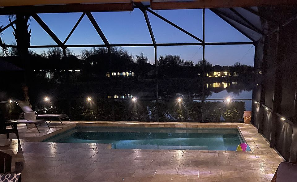 Lakeview home with upgrades Travertine pool deck, crown molding throughout, stone accents, recessed lights in every room, new paint; new ac