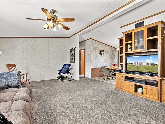 3 bed, 2 full bath manufactured home located in Tipton County in the country on 1 acre. Enter through the cozy living room and into the dining and kitchen area that comes complete with appliances and plenty of cabinets and counterspace. Primary suite bath features a stand up shower and garden tub. Head outside through the patio door onto the deck and fenced in back yard, perfect for evenings with family or friends. Outside you will also find 2 garden sheds.