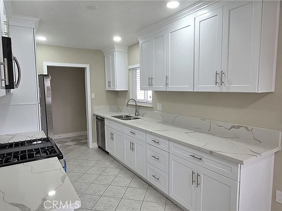 This beautiful newly renovated one-story, 4-bedroom, 2-bath home is nestled at the end of a quiet cul-de-sac, offering privacy, space, and plenty of upgrades. Inside this recently refreshed home you’ll find a newly painted interior, new kitchen cabinets, new counter tops, new stainless-steel appliances, new lighting, new bathroom vanities ,re-tiled showers and a new garage door which will give you a piece of mind with nothing to do but move in! The expansive living room is bright and inviting. Outside, the backyard offers plenty of possibilities, from entertaining, relaxing or adding additional storage space. This home has almost zero maintenance landscaping. You will find Solar Panels on the roof which will help you save on your monthly electric bills. The roof, AC and water heater were recently updated. In addition to the 2 car garage that can be converted to an ADU, there’s plenty of parking on the oversized driveway for an RV, trailer, recreational toys, and more. With the new renovation, solar panels, ADU potential and plenty of parking this home has a lot to offer! Located just minutes from shopping, dining, and with quick freeway access, this move-in ready home delivers comfort, flexibility, and location, all with no HOA and in a desirable neighborhood.