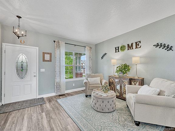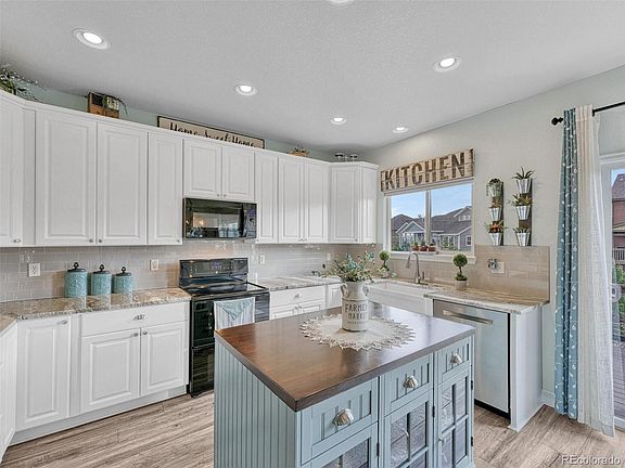Fall In Love….with this charming home in the sought after Hidden River III neighborhood of Parker. Meticulously cared for by the current owners, this home features an abundance of custom updates and upgrades that will welcome you the minute you step in the front door. Custom kitchen features white cabinets, custom tile backsplash, farm sink, granite countertops, pantry with glass door and a unique center island with butcher block counter. Equipped with a new garbage disposal, this kitchen also offers the convenience of pullout cabinets in the lower cabinet, maximizing storage and organization. The kitchen seamlessly flows into the inviting family room, adorned with a stunning shiplap feature wall and a gorgeous floor-to-ceiling stacked stone fireplace. You’ll enjoy beauty and endurance with the 12mm luxury vinyl floors and 4” trim throughout the main floor. The custom staircase also features luxury vinyl, wrought iron spindles and a handrail that exudes elegance. Inside your primary bedroom retreat is a true sanctuary, boasting a three-sided fireplace and a bonus flex space that can easily be transformed into an office, workout area, or cozy reading nook. A barn door leads to the primary bath, which offers double sinks, a generous soaking tub, and a spacious walk-in closet. Two additional bedrooms and a full bath complete the upstairs. The walkout basement presents a blank canvas, awaiting your personal touches, and opens up to your very own backyard oasis. Step onto the flagstone patio, which offers abundant room for entertaining and enjoying the outdoors. HOME EXTRAS: West facing driveway for easy snowmelt. Neutral designer paint throughout. Low HOA dues. Surround sound in the family room. Interior/Exterior Paint in 2017. Storage Shed. Douglas County Schools / Legend Feeder. Easy access to Parker, a vibrant town with dining, shopping, arts, hiking/biking trails and plenty of recreational amenities. Don't let this incredible home slip away - book your showing today