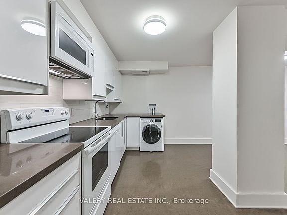 This large and versatile lower-level 1 bedroom + den suite, ideally located in a well-maintained multi-use building at Lawrence Ave W and Caledonia. Offering 846 sq. ft. of functional living space, this unit is perfect for those seeking a comfortable home with the flexibility for a live-work setup. The suite features: Modern kitchen with quartz countertops and soft-close drawers, Heated polished concrete floors throughout, Air conditioning for year-round comfort, 3-piece bathroom with a stand-up shower, Private in-suite laundry, Spacious den ideal for an office or workspace. Tenant responsible for 12.20% of Hydro, Enbridge (gas), and Water, plus 12.50% of Waste services.