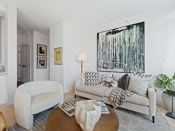 Floor-to-ceiling windowsQuartz counters and backsplashBlanco silgranit sinkPower blindsHardwood floorsVersatile denHome office