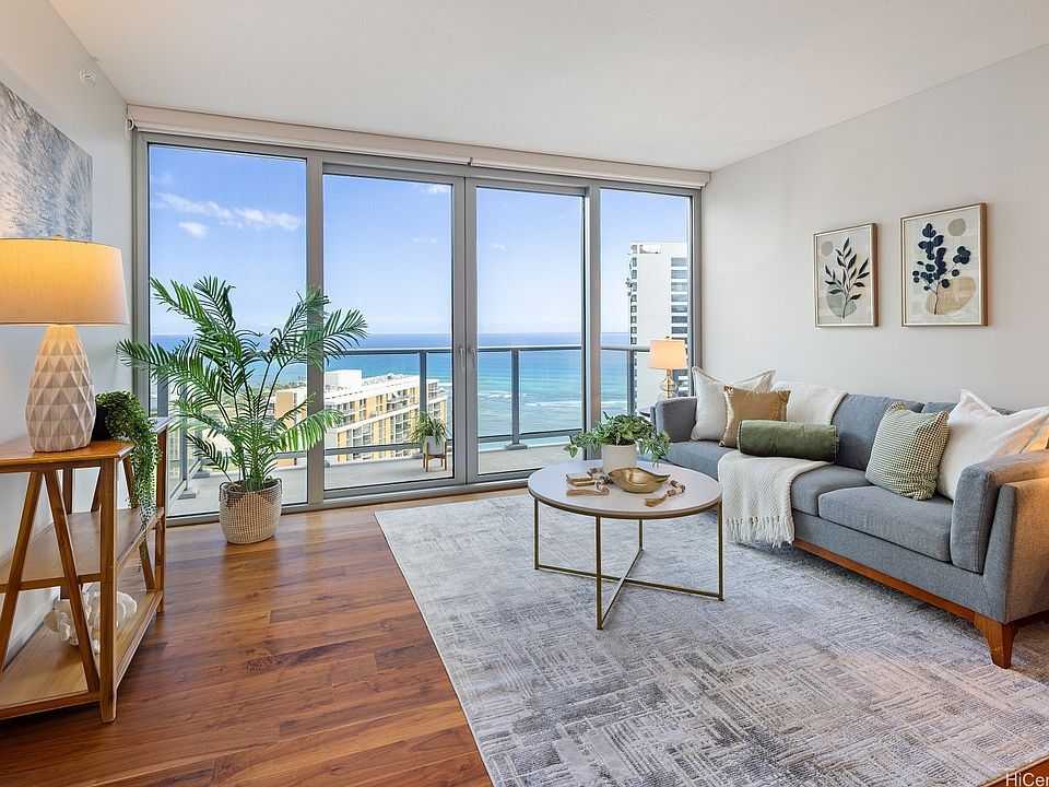 modern design, comfort, and style. Step inside to rich hardwood floors, elegant custom cabinetry, floor to ceiling windows, and automatic shades for your convenience. The kitchen features Bosch stainless steel appliances, granite countertops, and sleek porcelain tile. Waihonua residents enjoy an impressive array of resort-style amenities, including an infinity-edge pool with spa cabanas, a fitness center, private theater, and inviting BBQ pavilions. The building also offers a luxurious club room, guest suites for visitors, ample storage, and secure entry for peace of mind. Ideally located in the heart of Honolulu, you are just steps from Ala Moana Shopping Center and Beach Park, with Ward Village, world-class dining, entertainment, and the vibrant beach lifestyle all within easy reach. This exceptional residence offers the perfect blend of convenience, luxury, and island living. Note it is pet friendly too!