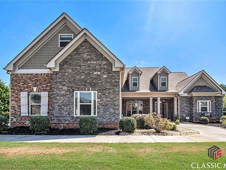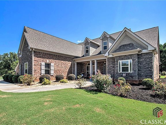 Come see an absolutely beautiful and well-maintained home with impressive features and upgrades in the Wildflower Meadows subdivision. The house is all brick, giving it a classic and elegant look. Hardwood flooring throughout the house provides a sophisticated and durable flooring option. Custom tile has been installed in all the bathrooms. The home is adorned with crown molding and custom trim. The high ceiling adds an open and spacious feeling to the living areas. The main floor includes an extra large master suite with a sitting room, double vanities in the master bathroom, a separate shower, and a soaking tub. There are also his and her walk-in closets. On the opposite side of the main floor plan, there is a guest bedroom with a full bathroom. The kitchen is spacious and equipped with stainless steel appliances, including a double oven. There's also an eat-in area that overlooks the family room with a wood-burning fireplace. A convenient laundry room is located off the kitchen, complete with cabinets and a utility sink. The large dining room has coffered ceilings. Upstairs, there are two large bedrooms, each with its own bathroom featuring a tub-shower combo and granite countertops. Above the garage, there's an extra large bonus room, perfect for a game room or office space. An open loft area is also available upstairs, providing additional versatile space. The back yard is level and suitable for gardening and play activities. The home sits on an acre lot, which includes some trees for added privacy. There's a three-car garage, providing ample parking and storage space. The home is located in the highly sought-after Oconee school district, and the neighborhood offers amenities such as tennis courts, a pool, and a playground.