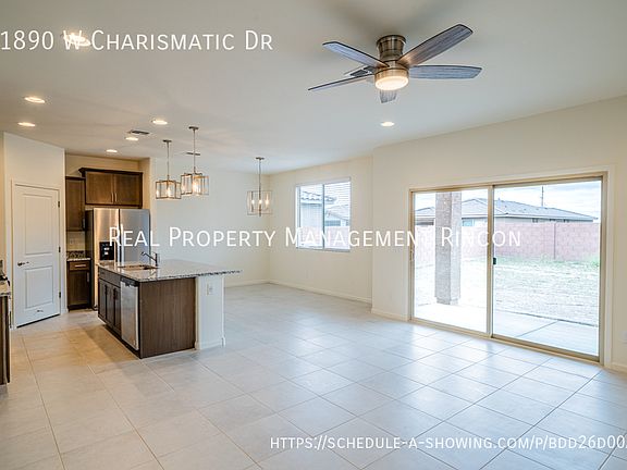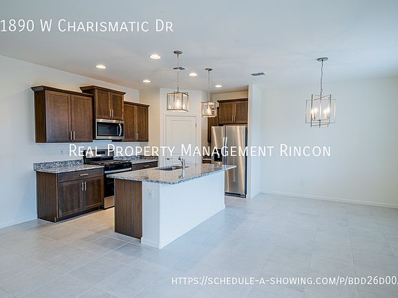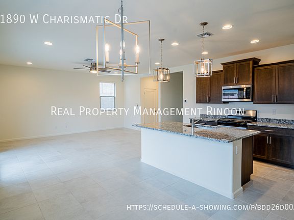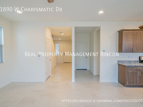Enter this gorgeous 4-bedroom, 3-bath home through a welcoming foyer that opens directly into a spacious, open-concept great room, perfect for entertaining and everyday living. With 2,220 square feet of livable space spread across two stories, the home features elegant slate cabinets, white quartz countertops, marble-look tile flooring, dark gray carpet, and a beautiful wrap-around patio. The attached 2-car garage offers convenience, and the home is in the desirable Chaparral at Rancho Marana subdivision. Situated just 3.3 miles from highly rated Marana High School, this home also offers proximity to major employment centers, including the Tucson Premium Outlets, Amazon Fulfillment Center, and employers in the growing I-10 commerce corridor. Combining thoughtful design, quality finishes, and a great location, this home is perfect for families and professionals alike. Schedule a showing today!