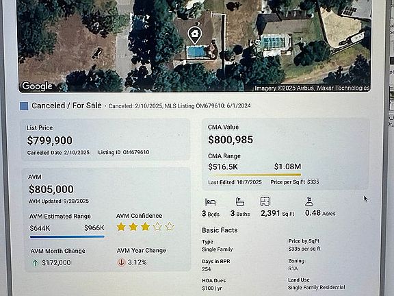 | 11/4/2025 | Price change | $825,500-2.9%$345/sqft |