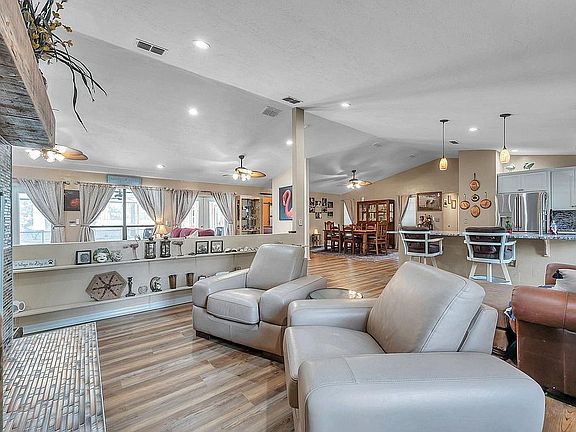 I love everything about this home, I remodeled it from the heart and it has a wonderful flow. The CAFE appliances are awesome. Large pool and fenced back yard are great for the dogs. There is a family of sandhill cranes that visit and rest here daily. I feed them and they leave me feathers as a thank you. This home is only steps away to the river via the community park located right behind the home. I don't have to lug my floats or kayak around the neighborhood just to get to the water. NO high taxes and NO flood insurance ate totally awesome. All the neighbors are great, and Blue Cove is the place to live in Dunnellon.