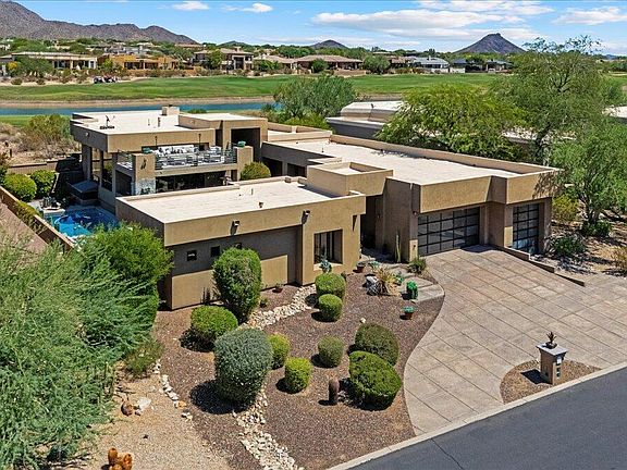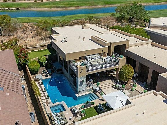 with panoramic views of the McDowell Mountains, golf course, sunsets, and twinkling city lights, this exceptional residence combines architectural elegance with true resort-style living. The chef's kitchen boasts Wolf and Thermador appliances, while the spa-inspired primary suite, glass-encased wine wall, and private theater create an atmosphere of indulgence. A separate guest house offers gracious accommodations for family and friends, and the Zen-inspired yard features a waterfall, pool, and putting green. Located within the prestigious 24-hour guard-gated Ancala Country Club, just moments from Scottsdale's finest schools, dining, shopping, and the Mayo Clinic — a rare fusion of luxury, privacy, and community.