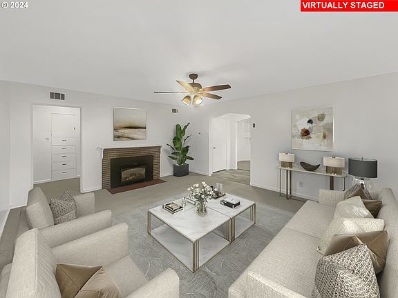 Welcome to this elegant home with a cozy fireplace that adds warmth and charm to the living space. The neutral color scheme and fresh interior paint create a soothing environment. The kitchen is a chef's delight with all-new stainless steel appliances. New flooring throughout enhances the home’s modern appeal. Step outside to a spacious deck and enjoy the privacy of a fenced backyard. This home perfectly blends style and comfort, ready to create lasting memories.This home has been virtually staged to illustrate its potential