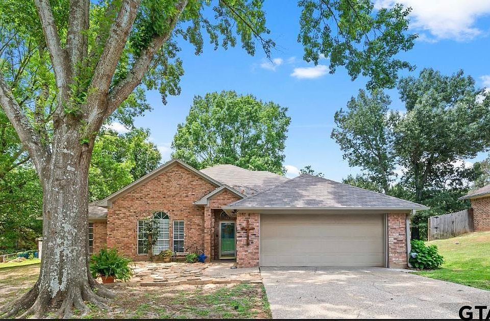 Enjoy this beautifully renovated home in a peaceful, quiet setting that combines the conveniences of nearby Tyler a few moments away with the academically strong schools of Whitehouse ISD! Nestled on a leafy street that allows you to enjoy living in the country, this home gives you the best of everything! The bright kitchen is full of light thanks to a wall of bay windows in the eating area. Stunning new marble countertops and fresh paint in a gorgeous teal blue make the kitchen instantly welcoming.Throughout the home you'll see fresh paint and gleaming hardwood floors. The large living area is centered around a beautiful woodburning fireplace, and provides ample room for entertaining. The showpiece of the renovation is the amazing primary bath, which has been turned into a small spa, ready to provide relaxation on tap! An open, rainfall-style shower with a specially tiled floor, a deep soaking tub, new double vanity with upscale fixtures, and all new tile and ceramic flooring make this bath a mini-vacation! The oversized walk-in closet is a dream, set up with a vanity area, additional storage, and plenty of room for the even the most frequent of shoppers. Lovely pleated linen window shades are controlled by remote, and were professionally installed. Both secondary bedrooms are spacious and have deep closets for storage. Tall mature trees shade both the front and back yards, providing a cool spot for a hammock or play area for children. Even the trees have had special attention, as they were recently professionally trimmed and pruned. This home has been lovingly updated in so many areas, and provides the perfect country setting for you to call home.