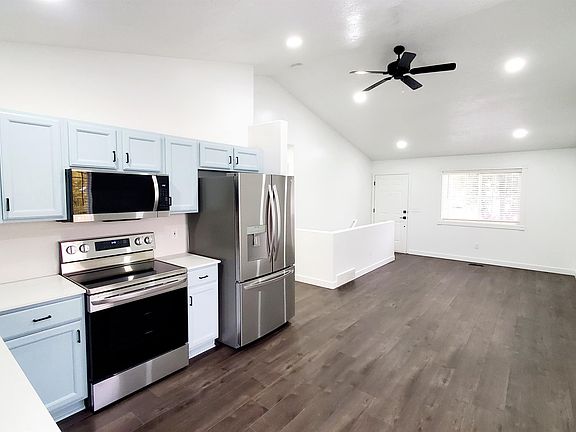 This home is centrally located just minutes away from shopping, next to the Aquarium and American Preparatory Academy and provides quick and easy access to I-15. There are 4 bedrooms, 2 bathrooms, 1600 finished sq. ft., detached 2-car garage and a fenced yard. The kitchen has stainless steel appliances and solid surface counters. There are 2 bedrooms with 1 bathroom upstairs and 2 bedrooms with 1 bathroom in the basement. Large laundry room is located in the basement. Please note that the home backs up to the FrontRunner Trax Line.