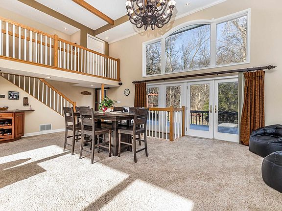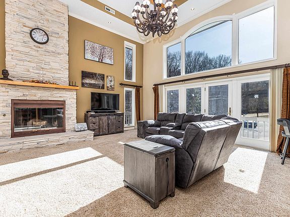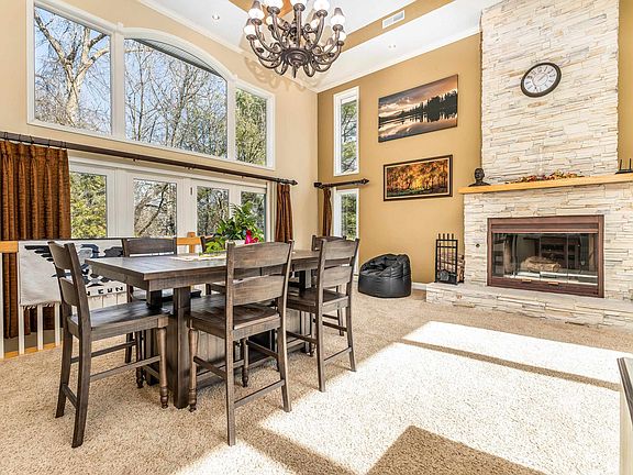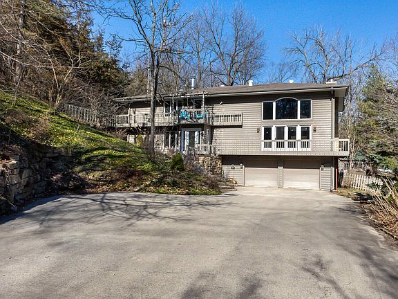 Must see hidden gem tucked into the woods! A unique custom built 4home that features 4 bedrooms, 2.5 bath, 2 car garage. This lot offers privacy on 3 sides and woods across the street. Besides the 2 spacious en suites, the great room is stunning and the center focus of the home featuring a 2 story vaulted ceiling, native stone fireplace and floor to ceiling windows. Includes mini bar as well. The great rooms opens up to the newly refinished wrap around decks which is accessible from most of the rooms, in total around 1500+sqft.The kitchen opens up to a nice size dining room that opens up to the deck for outdoor dining as well. The spa like master suite offers a double vanity, 2 walk-in closets, separate tub/shower, deck access. Not to mentioned the 16x18 sitting room off the master. Besides the surrounding wooded area, there are many perennials, an irrigation system, a walking path, natural stone formations, pergola's as well as an adorable garden shed or play house. Doggy door in lower level goes out to fenced in area. They installed new energy star furnaces with air filter sysytem. Private yet located close to not only shopping center, but less than a mile jog, drive, or bike ride to Heritage Trail & Pond. This uniquely beautiful home is the perfect place to entertain and enjoy nature. Room dimensions to be verified by buyer.