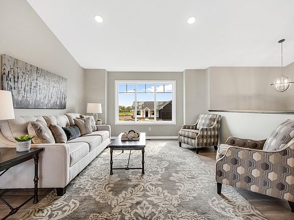 Completed home ready and available for quick closing! Enjoy all the benefits of new construction without the wait time! Home is located on a great lot with a HUGE backyard and is fully sodded with in-ground sprinkler system. Wonderful layout with open floor plan and spacious primary suite! Kitchen boasts custom cabinetry with soft close cabinetry and corner pantry. The oversized 3 car garage is fully insulated. Unfinished lower level will provide plenty of room for future expansion with plenty of room for a large family room, bathroom, and bedroom. Don’t miss your chance at this quality new construction home on an oversized lot!