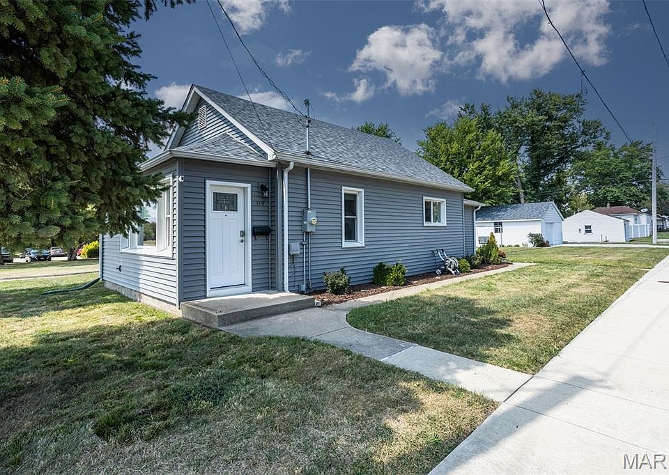 Fully Renovated Bungalow in the Heart of Edwardsville! This beautifully remodeled 2 bedroom, 2 bath home has been updated from top to bottom, offering modern finishes and a move-in ready feel. Step inside to find spacious living areas with gorgeous LVP flooring throughout and abundant natural light. The large kitchen features crisp white cabinetry, stainless steel appliances, and plenty of space for a dining table. The primary suite includes a private half bath and walk-in closet. The full bathroom is spacious and even has a heater for added comfort. A rear deck provides the perfect spot to relax, grill or entertain outdoors. Additional highlights include an oversized 1-car garage with a workshop area and separate storage room. All the work has been done—just move in and enjoy!