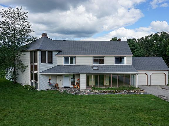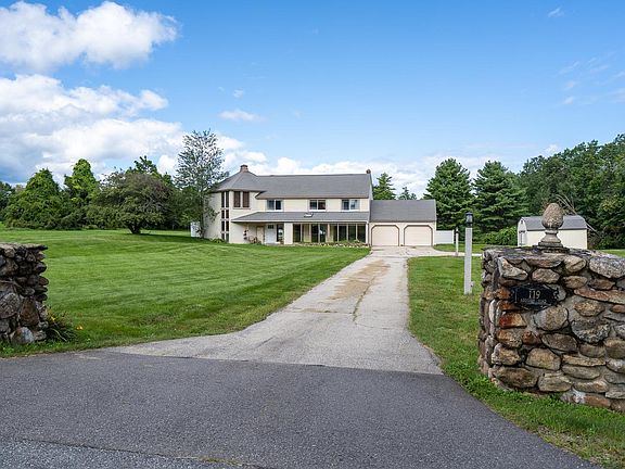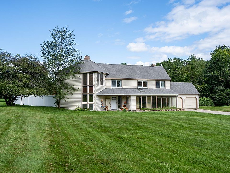 A real find in the town of Goffstown NH. This is a custom designed 4 bedroom contemporary colonial sitting on just over 2 acres. of flat land with an in-ground pool and luscious lawn. Over 3500 sq feet of living space with lots of natural light. Spacious rooms and open concept. This is truly a one of kind home with its unique floor plan. First level: large living room with built in book cases, sunroom, kitchen, dining and laundry. 2 car garage and utility area. 2nd level: 4 bedrooms, including master bedroom with double closets and full bath and sauna room. Master bedroom has a large deck overlooking the grounds and heated pool. Home inspection, septic test and water test has all been completed. Home is ready for cosmetic updates and new owners.