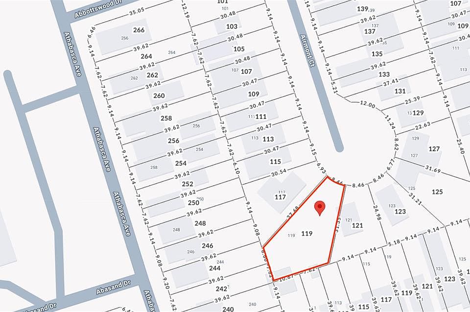 PRIME DEVELOPMENT OPPORTUNITY IN ABASAND! Welcome to 119 Airmont Court, a spacious 7,900 sq.ft. pie shaped lot tucked into a quiet cul de sac. Zoned R1S, this property offers outstanding flexibility. Build your dream single family home, design a duplex, or incorporate an income producing suite. The generous size allows room for RV parking, an oversized garage, or a large yard to suit your lifestyle. Location is everything, and this lot delivers: just minutes to downtown and the hospital, while within walking distance to schools, parks, trails, and transit. Whether you’re a first time buyer, investor, or planning your forever home, this lot offers strong value and long term potential in one of Fort McMurray’s most desirable communities. Opportunities like this don’t come often. Secure your lot and start planning your dream home today! Contact us now for more details or to explore the possibilities.