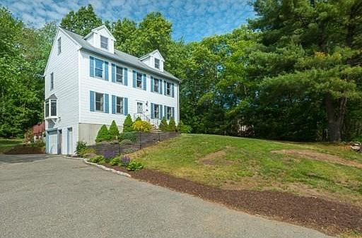 Move right into this fantastic 3 bedroom 2.5 bath center entrance colonial located in desirable Billerica Country Club location. This home features a large eat-in kitchen with center island and ceramic tile floor, a formal living room and dining room with hardwood floors, a first floor laundry room and 1/2 bath. Continue upstairs to 3 large bedrooms a full bath and master bath with jetted tub. The walk up dormered attic is perfect for storage and has great potential for expansion. Updated gas heating system and central AC, central Vac and alarm system. This home sits on an almost 1 acre lot. There is a great back yard with fire pit, an extra large 28x20 deck with hot tub and large 20x12 storage shed. Plenty of off street parking and garage. A perfect place to call home!