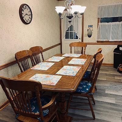 Enjoy the screened in back porch, often visited by deer drinking from the bird bath in yard. Perfect for quiet breakfast or breezy dinner. Gliding rocker on the porch is great for reading. Walk to Beebe hospital for work.