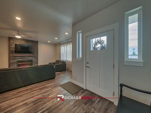 Welcome to this modern, thoughtfully designed home built in 2022, offering clean lines and contemporary finishes throughout. With four spacious bedrooms and two well-appointed bathrooms, this residence provides comfort and functionality for a variety of lifestyles. The open-concept living area features a cozy electric fireplace, perfect for Wyoming winters, while the adjoining kitchen offers generous space for cooking and entertaining. The primary suite includes a stylish zero-entry shower for easy accessibility and added luxury. The attached two-car garage has been upgraded with brand-new epoxy flooring, adding durability and a polished finish. Located in a newer neighborhood with sidewalks and wide streets, this home blends style, comfort, and practicality in a setting ready to welcome its next owner.