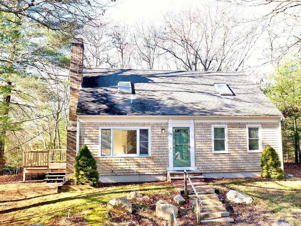 119 Brigantine Drive is located in a highly desirable neighborhood in East Falmouth, known for its scenic beauty, peaceful atmosphere, and proximity to amenities.The interior of this home exudes warmth and character. You'll find a classic Cape Cod layout with a cozy fireplace in the living room, a bright and open kitchen, and a dining area perfect for hosting family and friends. Gleaming refinished hardwood floors and plenty of natural light give the space an inviting ambiance. With 4 bedrooms (2 large up & 2 down) and 2 full bathrooms (one on each floor) this home has space for friends, family, and guests. Step outside and discover a serene backyard, perfect for enjoying the Cape's beautiful seasons. The property offers a private, well-maintained yard, ideal for outdoor activities and relaxation. Whether it's sipping your morning coffee on the deck or having a BBQ with friends, you'll love the outdoor possibilities this property provides. Entire home has been freshly painted, hardwood floors refinished & brand new carpet in bedrooms. New stove, hood, fridge and dishwasher. Boiler just serviced! Passing TitleV in hand. Buyers and buyers agents to verify all information herein.