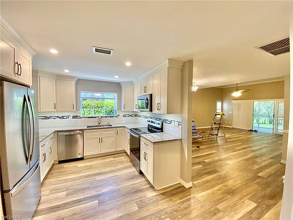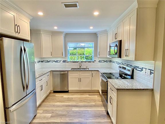 NEWLY RENOVATED This beautiful Two Bedroom + Den, Two Bathroom Villa is a must see! Featuring Brand New Luxury Vinyl Plank that are waterproof and more durable than hardwoodwood floors, completely remodeled kitchen with new modern cabinets, granite counter tops, and new stainless steel kitchen appliances. This charming well maintained villa offers privacy and boasts a good-sized master bedroom and spacious living area. The kitchen is complimented with a large bay window and a pass-through breakfast counter open to the media/office/den area. Plus, a newly installed front porch and deck in the back yard that is great for lounging and gathering with friends. This home also features a detached one car garage with work bench and storage. There are limited annual rentals available in this sought after community of Bristol Square located in Kings Lake. This Villa Home will not be on the market long so don't wait... Act now! The residence is conveniently located to the community pool, tennis courts, pickle ball and the walking trail. Rent includes water & sewer.