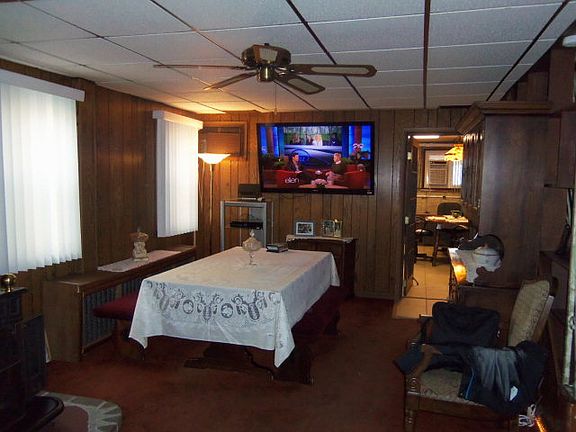 Large single on double lot. Eat in kitchen with stainless appliances, tile floor, refrigerator brand new. Propane fireplace between living and dining rooms for extra heat source. Large bathroom with walk in shower. Though no heat, attic is finished for 4th and possible fifth bedroom, den or office area. Window units in almost every room. Basement is finished with electric baseboard heat and can be great family room area. There is a full bath and plenty of additional storage. 3 car garage has over head storage. Lot adjacent is included adding 2 more parking spaces