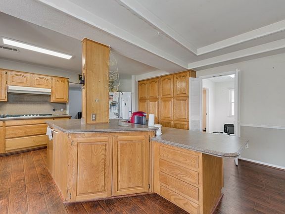 This property features a large kitchen with a full wall of cabinets, a walk-in pantry, an office, utility room, and a 2-car garage. Outdoor amenities include a pool, pool house with bathroom, and a large storage building and workshop. Home and outbuildings need paint, carpet, and touch ups, offering a great opportunity for buyers to add personal updates and improvements reflecting their own taste. Per owner both HVAC units were replaced within the last 4-years, and the hot water heater was replaced within the last year.