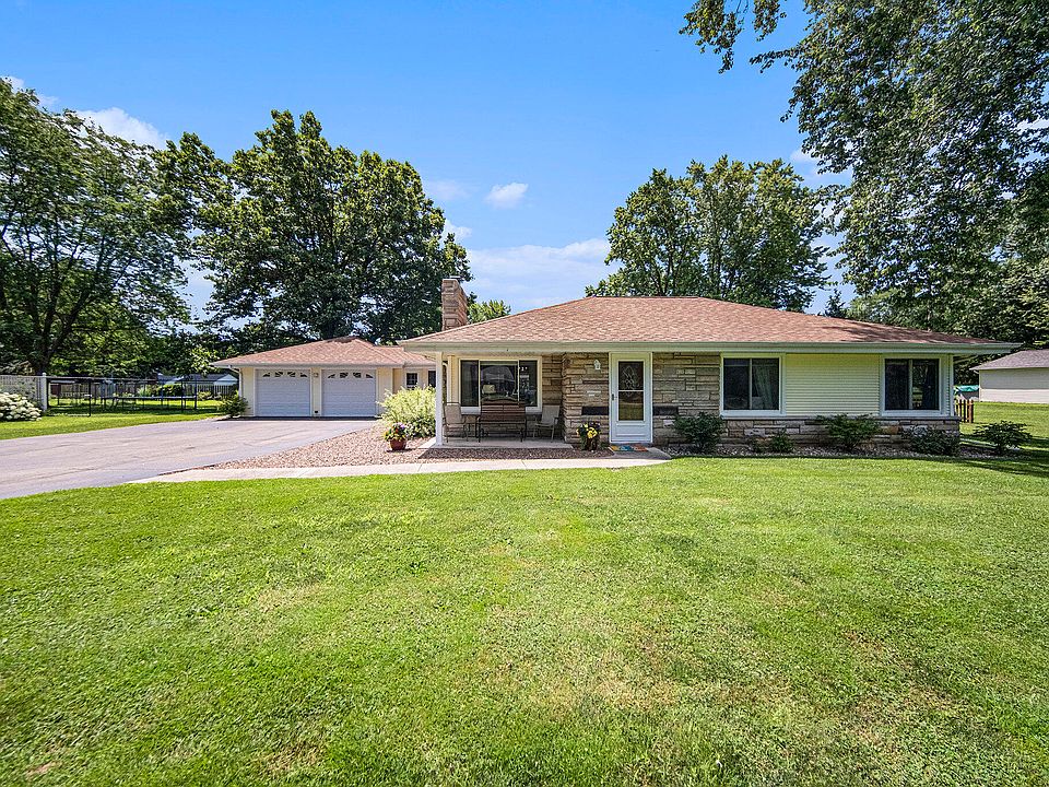 Welcome home to this beautiful ranch updated 3 BA and 2BA on a spacious 1/2 acre lot. Also with a fenced back yard 10 x 18, 2 story shed for extra storage. Inside you'll love the refinished hardwood floors, fresh paint and a fireplace. The kitchen and one bath has been completely renovated, blending modern finishes with timeless charm. Step out onto the large concrete patio prefect for entertaining and relaxing. Enjoy the convivence of the 2.5 attached garage. Prime location close to schools, shopping and major highways for easy commuting.